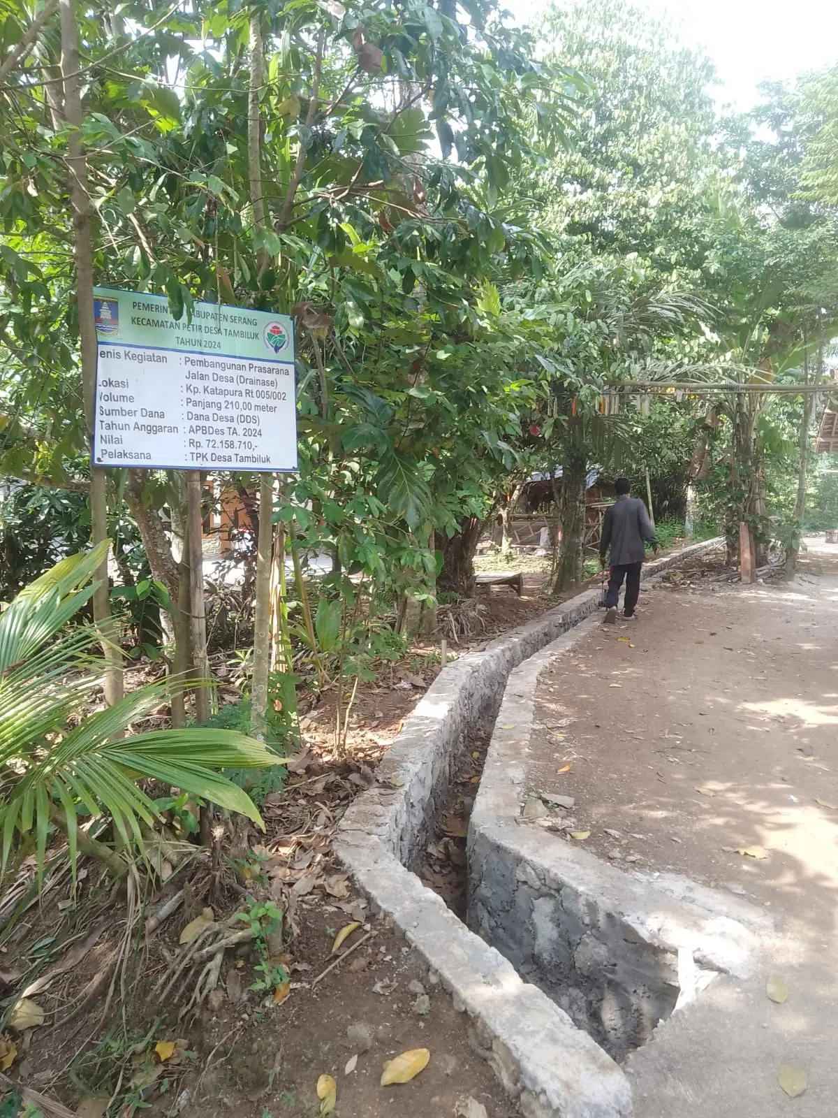 Pembangunan Saluran Drainase yang dilaksanakan di Kp. Katapura Rt. 005 Rw. 002 Desa Tambiluk Kecamatan Petir Kabupaten Serang Sebagai Realisasi APBDes Desa Tambiluk Tahun Anggaran 2024